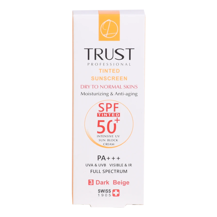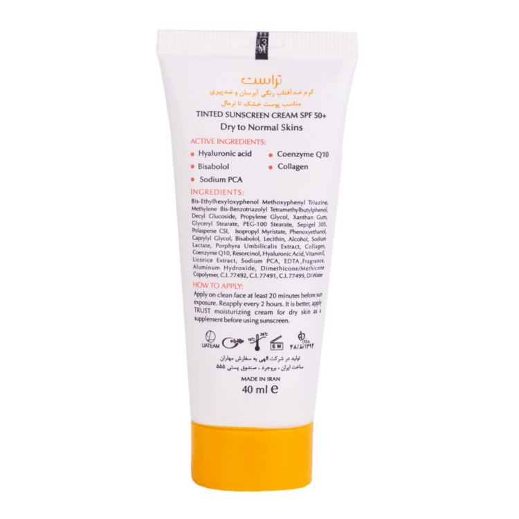 کرمهای ضدآفتاب رنگی تراست با SPF50+ از مرغوبترین و جدیدترین مواد اولیه موثره دارای حداکثر حفاظت دربرابر پرتوهای مضر خورشید ساخته شدهاند؛ این کرم با وجود بهرهمندی از بافتی سبک، دربرابر آسیبهای وارده توسط نور خورشید به خوبی از پوست محافظت و با مهار رادیکالهای آزاد از تخریب سلولهای پوستی جلوگیری میکند. همچنین با مصرف این محصول، بدون بسته شدن منافذ پوستی و ایجاد خلل در تنفس سلولهای پوستی، پوستتان آبرسانی میشود.