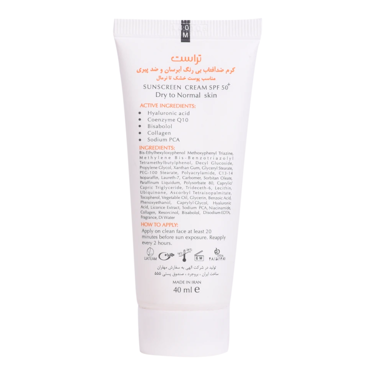 کرمهای ضدآفتاب رنگی تراست با SPF50+ از مرغوبترین و جدیدترین مواد اولیه موثره دارای حداکثر حفاظت دربرابر پرتوهای مضر خورشید ساخته شدهاند؛ این کرم با وجود بهرهمندی از بافتی سبک، دربرابر آسیبهای وارده توسط نور خورشید به خوبی از پوست محافظت و با مهار رادیکالهای آزاد از تخریب سلولهای پوستی جلوگیری میکند. همچنین با مصرف این محصول، بدون بسته شدن منافذ پوستی و ایجاد خلل در تنفس سلولهای پوستی، پوستتان آبرسانی میشود.